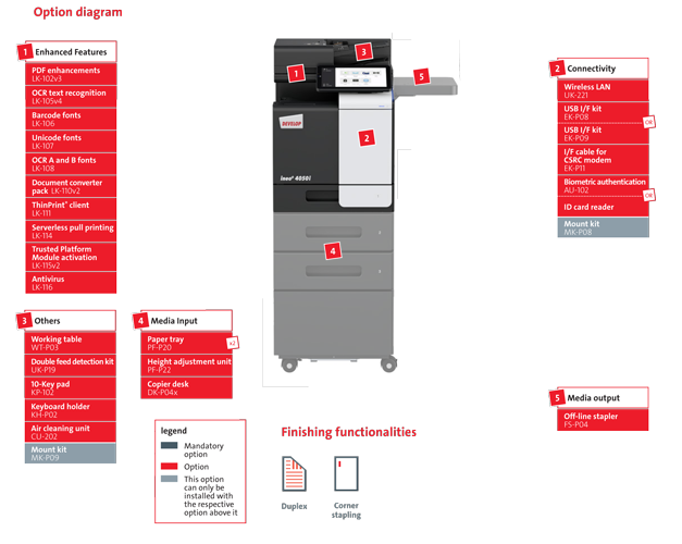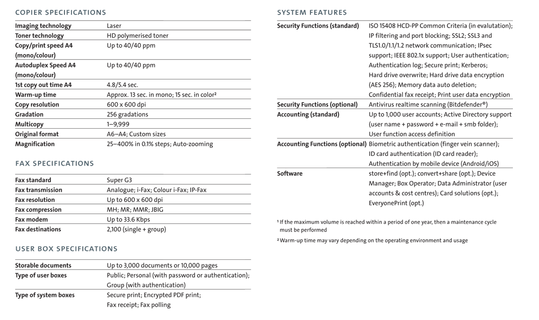 The Develop ineo+ 4050i is the fastest device in our A4 range. At printing speeds of 40 pages per minute, it will handle anything you throw at it, at home or in the office.